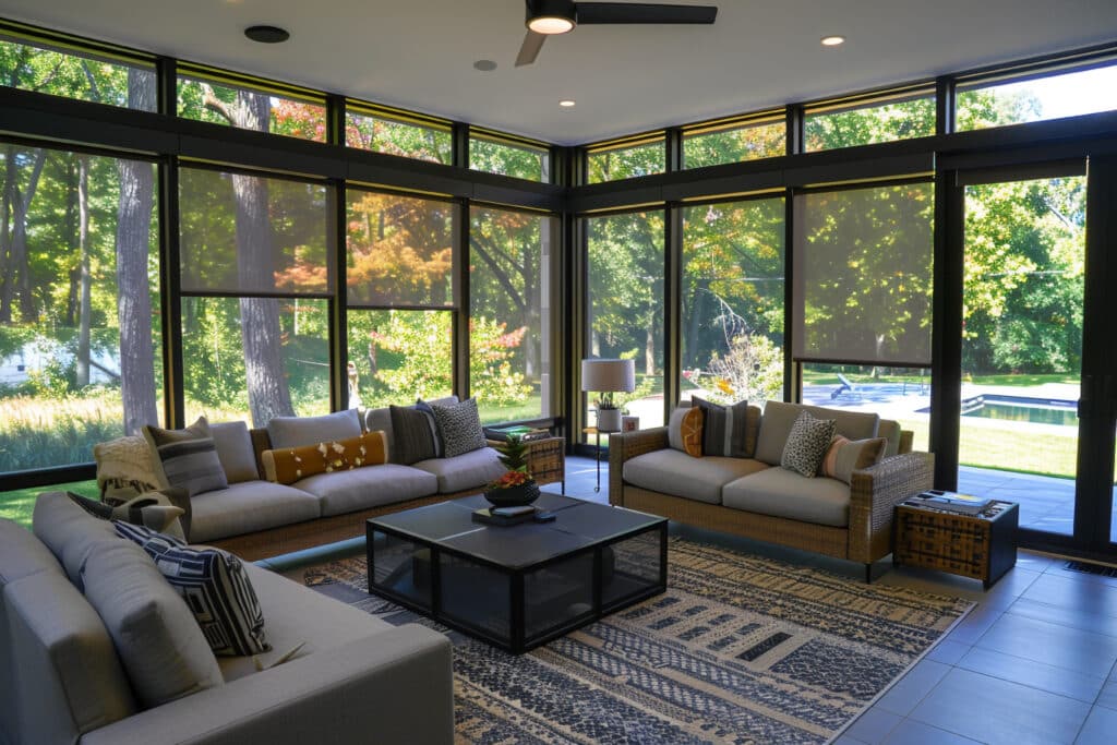 You’ll often hear people refer to three-season and four-season sunrooms. A three-season sunroom lacks climate control and is mostly meant to be comfortable for use from early spring through the end of fall. A four-season sunroom is designed for a year-round experience by adding climate control features that often include an HVAC system.